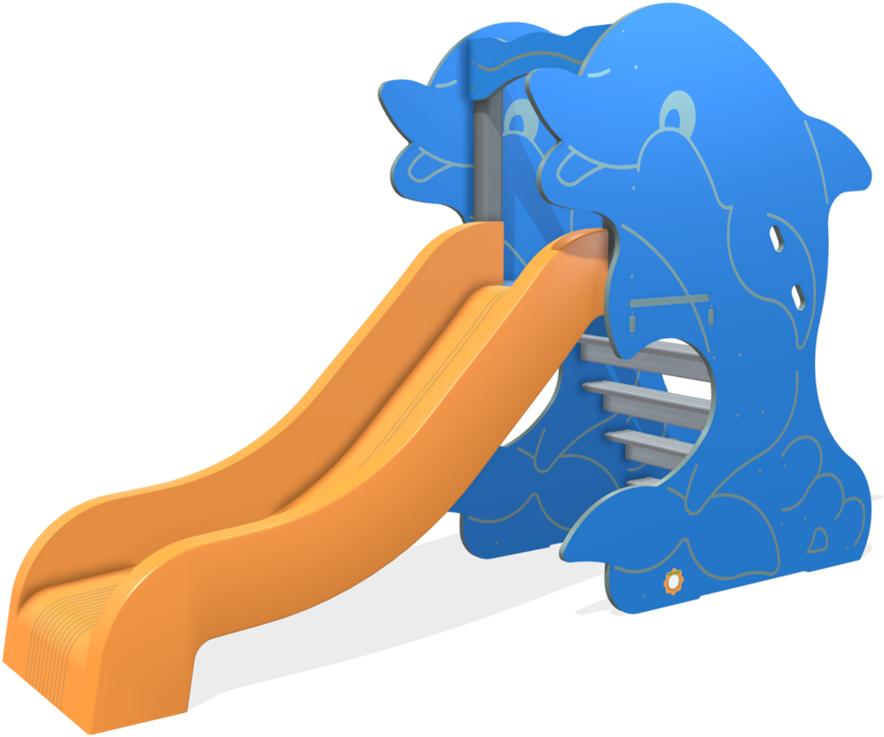84 cm high slide in rotational molded recyclable polyethylene with longitudinal raised lines to facilitate sliding and stiffen the slide itself
